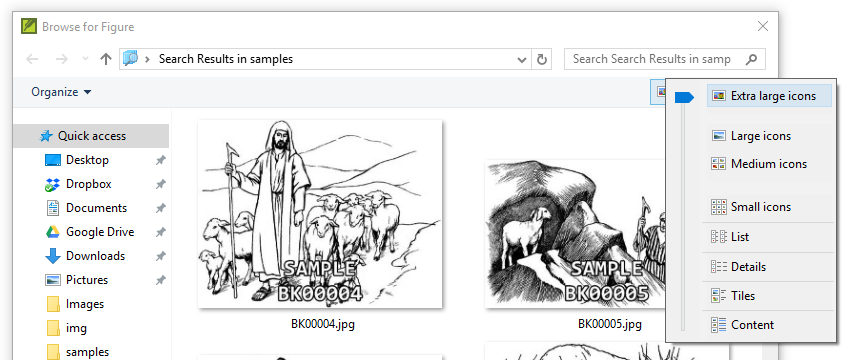 If your search results are not displayed with extra large icons: