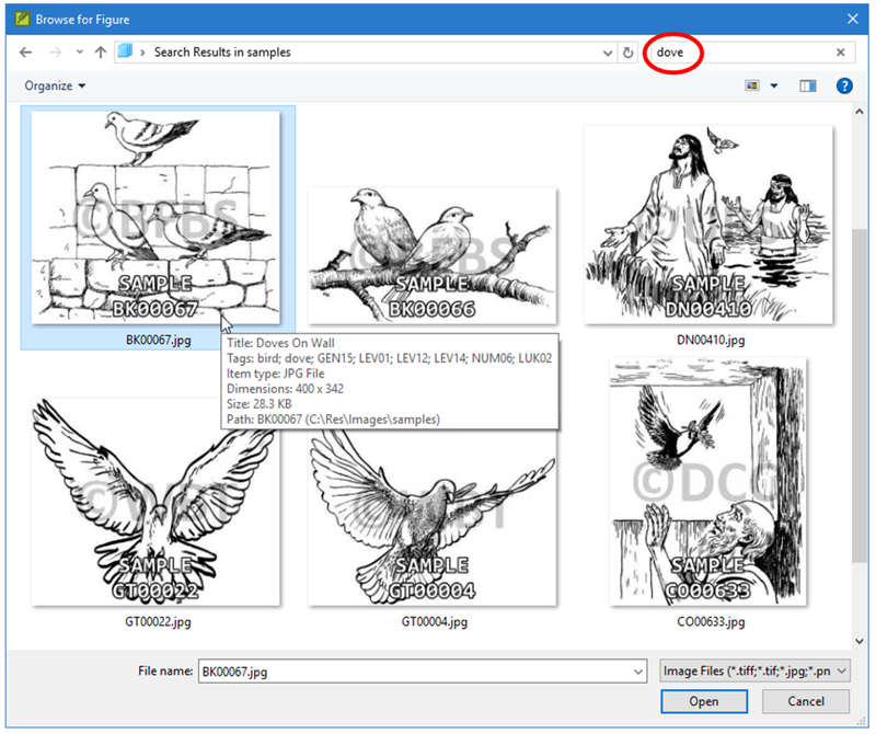 placeholders, as you can search for appropriate illustrations using keywords, directly from Paratext’s