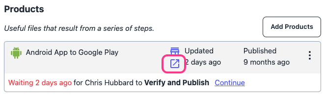 Scriptoria can publish a project in multiple ways. Scriptoria calls these products. You can publish to Google Play and to an S3 Bucket, which can be linked from a website.
